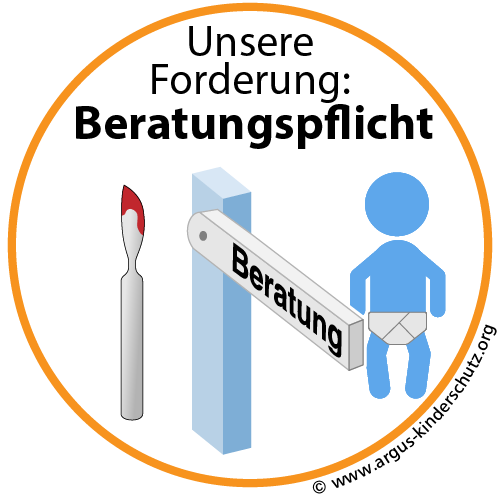 Wenn an einem unmündigen Jungen eine Beschneidung ohne medizinische Indikation vorgenommen werden soll, so sollte dies zur Voraussetzung haben, dass vorher eine Beratung durch eine unabhängige Fachorganisation erfolgt ist. So eine Beratung hindert letztlich niemanden an einem Eingriff, stellt aber sicher, dass ausreichend zu den möglichen Folgen des Eingriffs aufgeklärt wurde, und auch die Interessen des unmündigen Kindes vertreten werden. Wir setzen uns dafür ein, dass so eine Beratungspflicht gesetzlich vorgeschrieben wird.